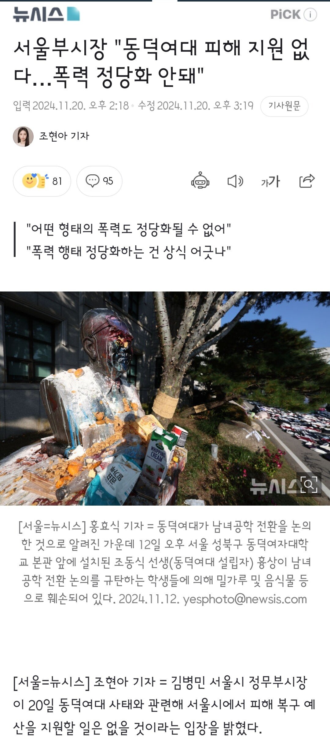 서울 부시장 : 동덕 여대 사태 피해 지원..