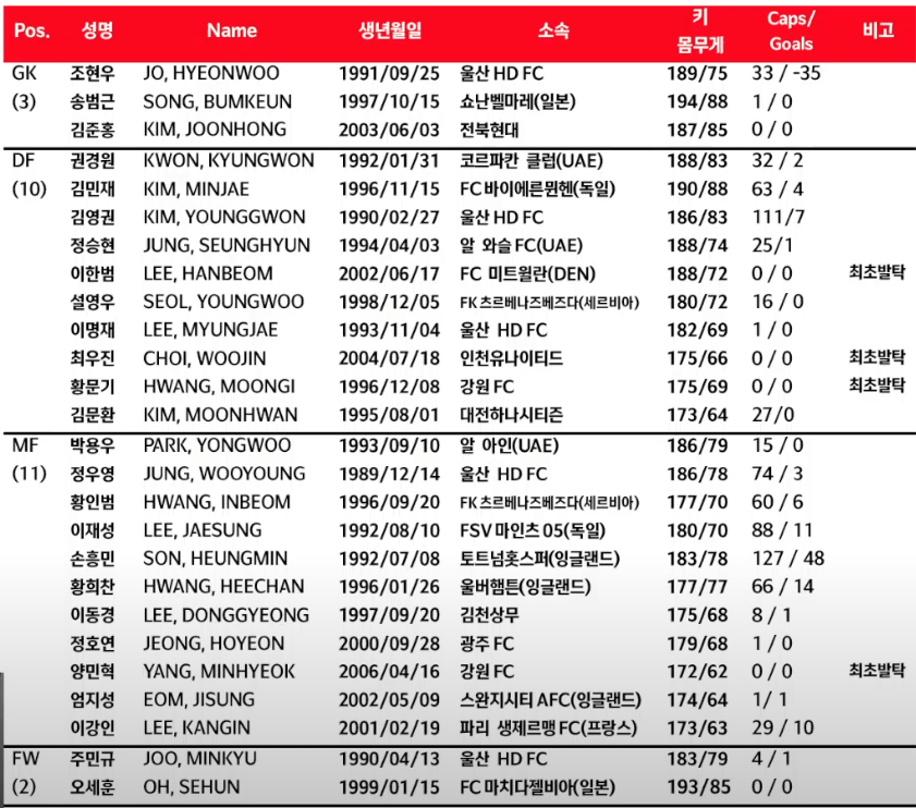[오피셜] 대한민국 축구 국가대표팀 9월 A매치 명단 발표 이한범, 최우진, 황문기, 양민혁 최초발탁