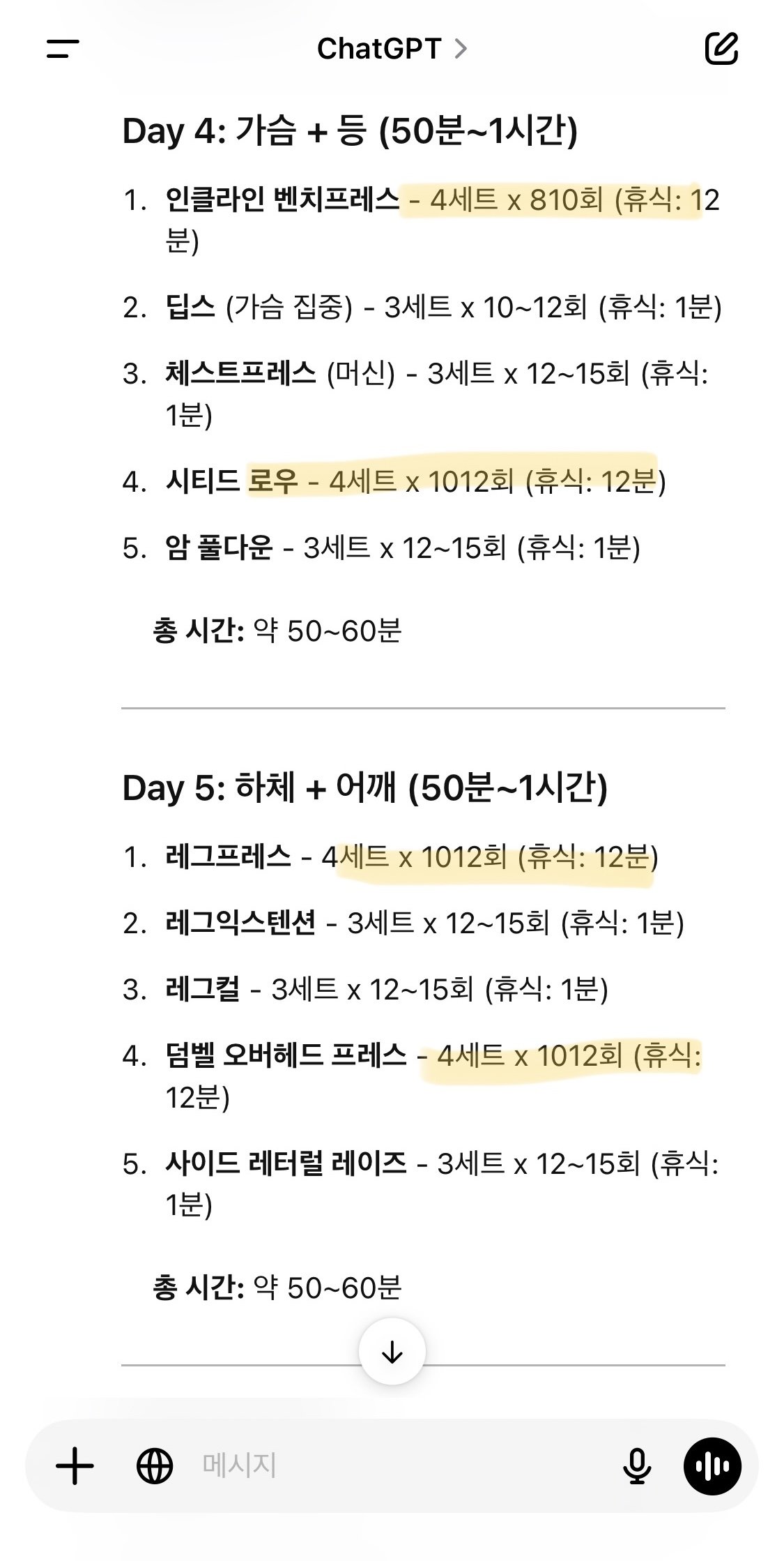 헬린이라 운동루틴 짜다가 AI한테 물어봤는데 죽으라는거 맞지?