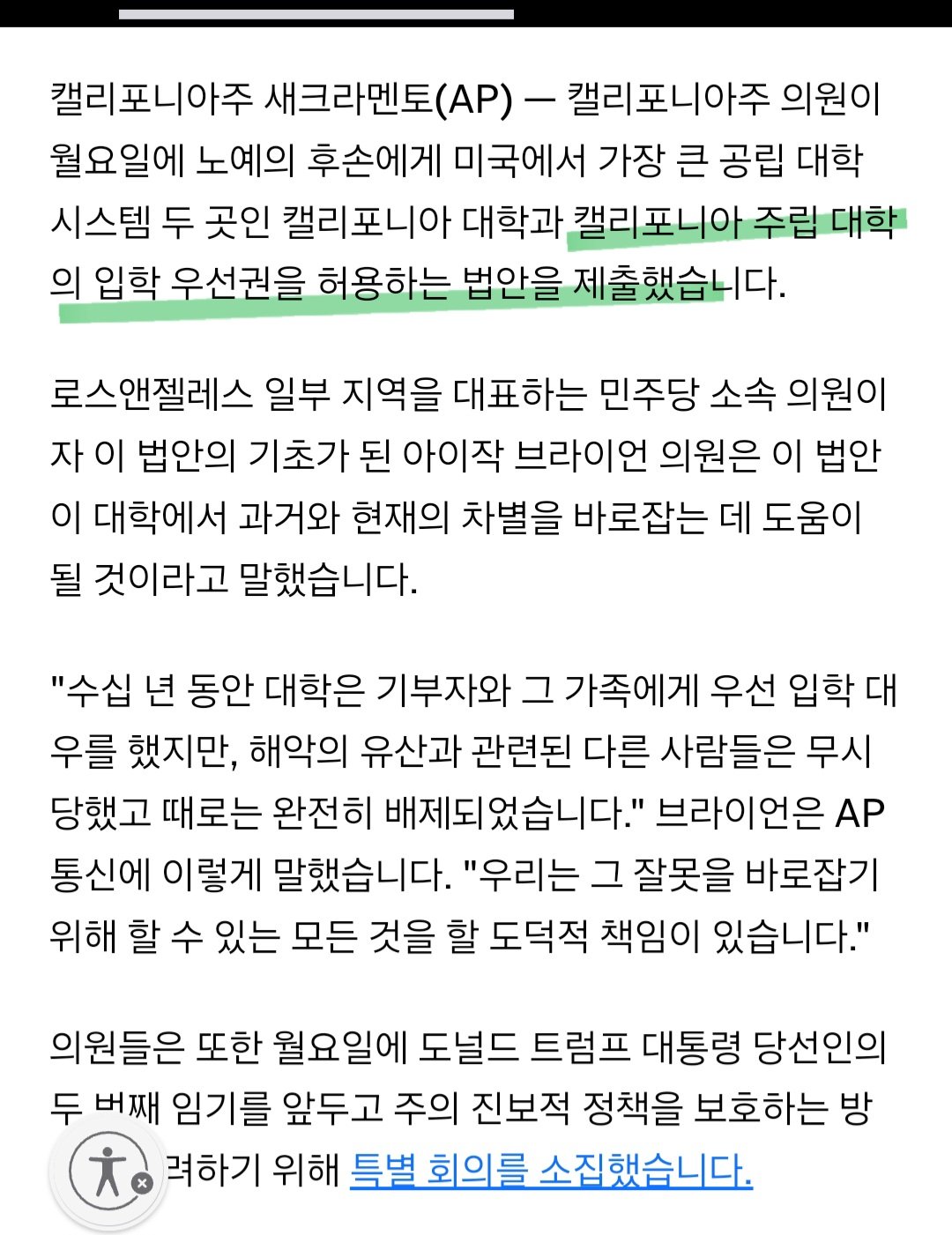 캘리포니아 주립(공립) 입학시 노예후손에게 우선권 부여하겠다함