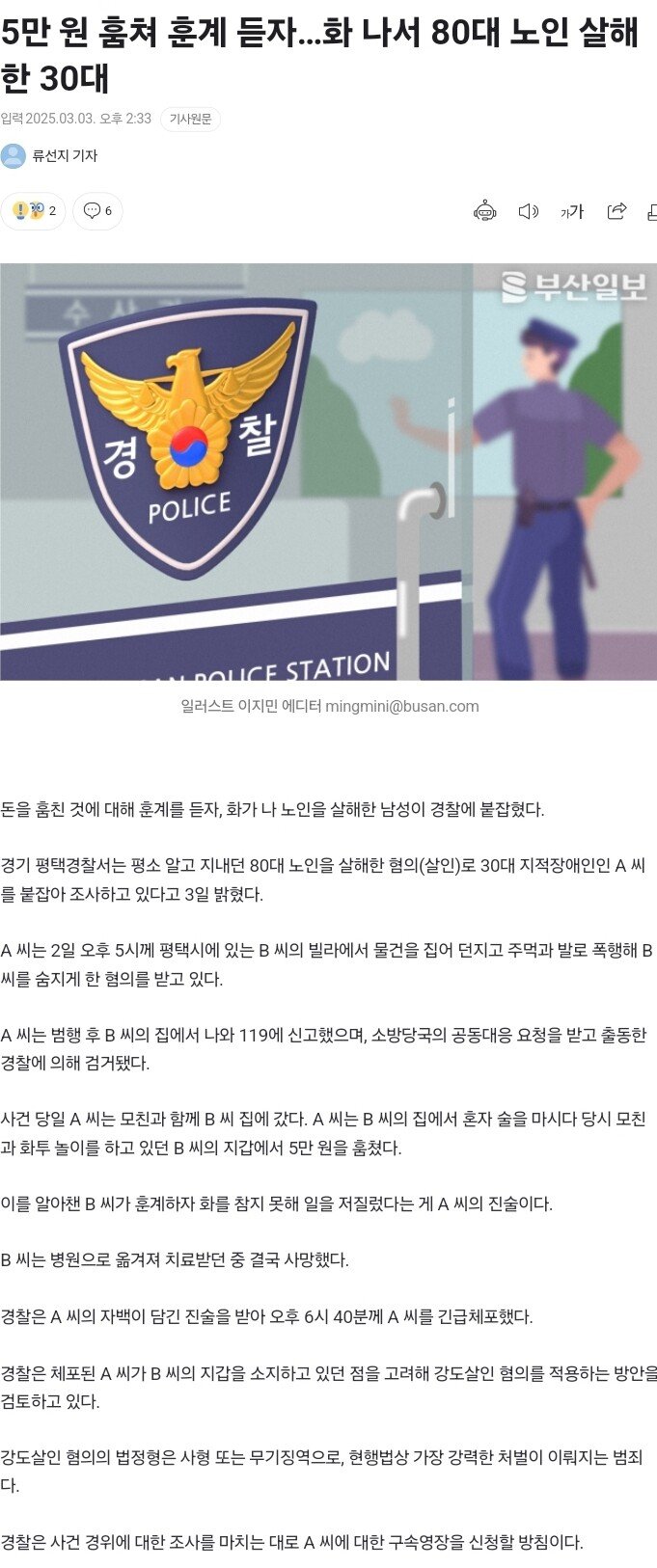 5만 원 훔쳐 훈계 듣자…화 나서 80대 노인 살해한 30대