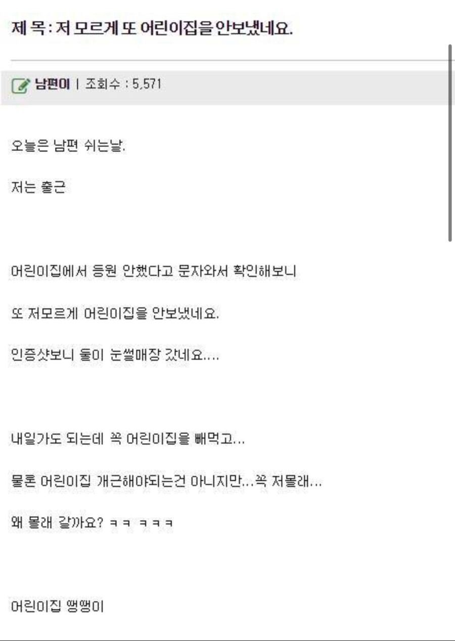 애 아빠가 저 모르게 어린이집을 안보냈어요
