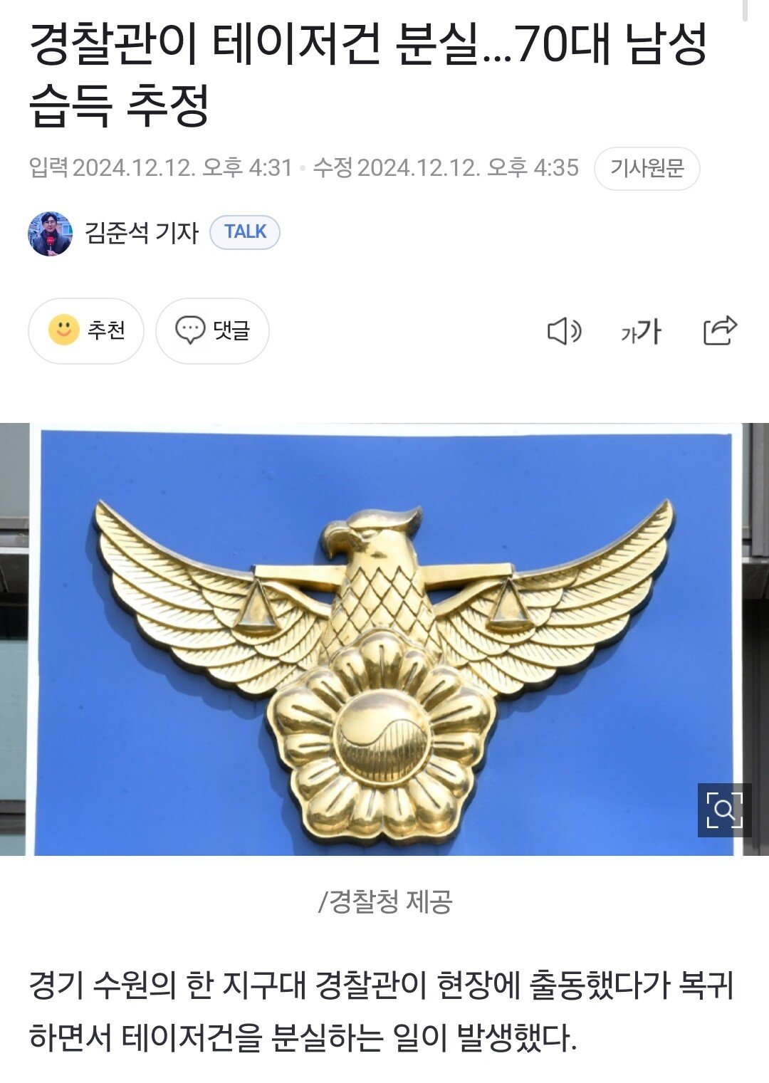 버스 정류장에 노인이 누워있다는 신고 받고 출동했다가 복귀하면서 분실했데