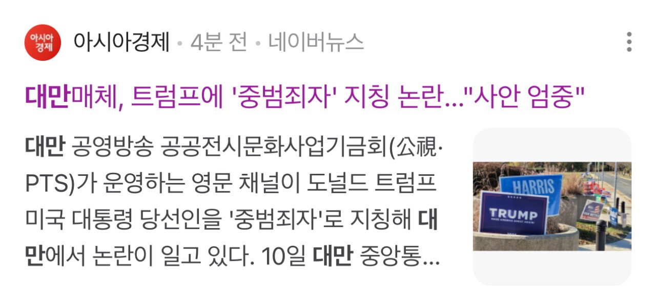 트럼프를 중범죄자라고 칭한 대만공영언론