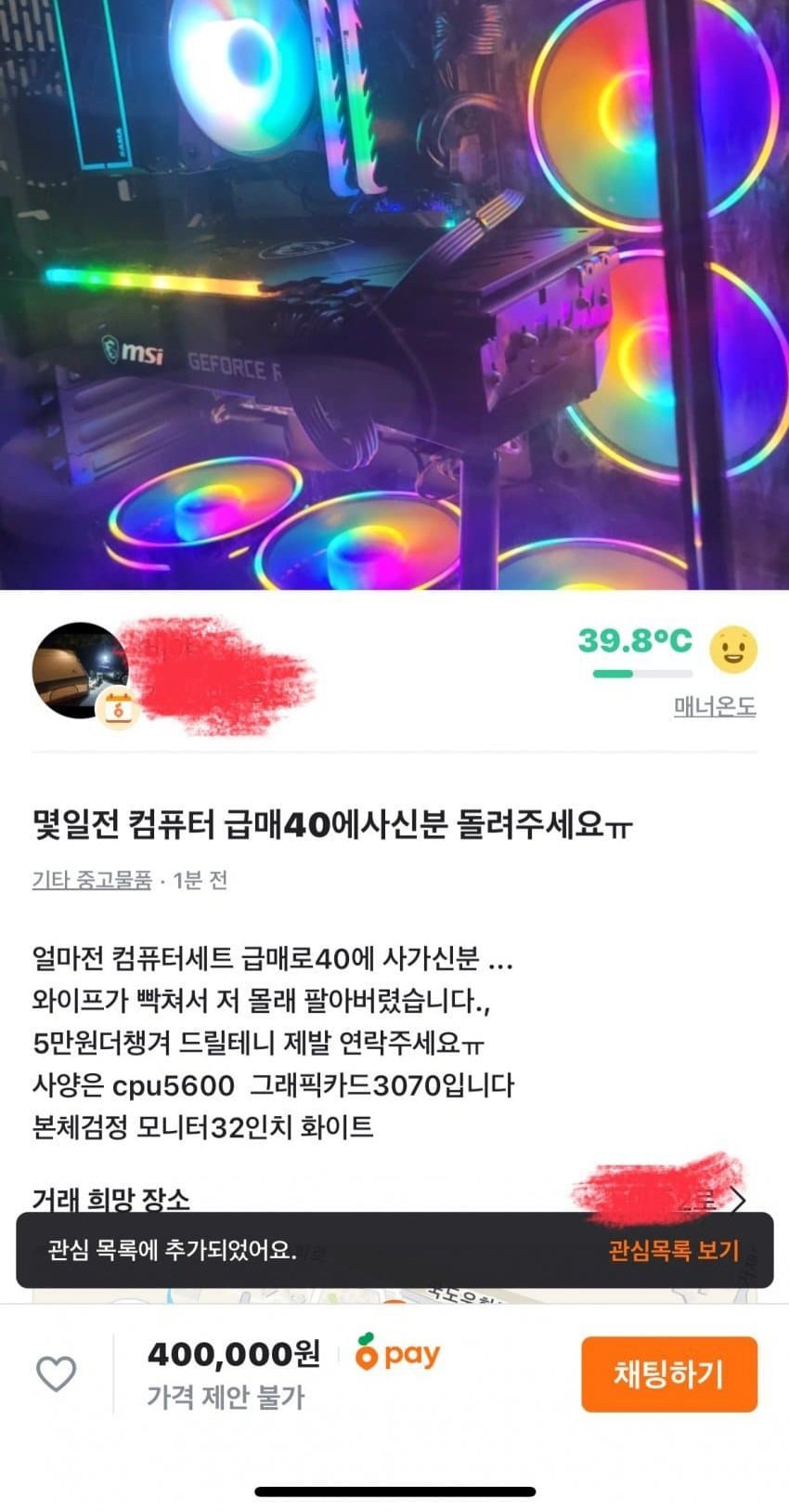 남편 몰래 컴퓨터세트 40만원에 팔아버린 아내