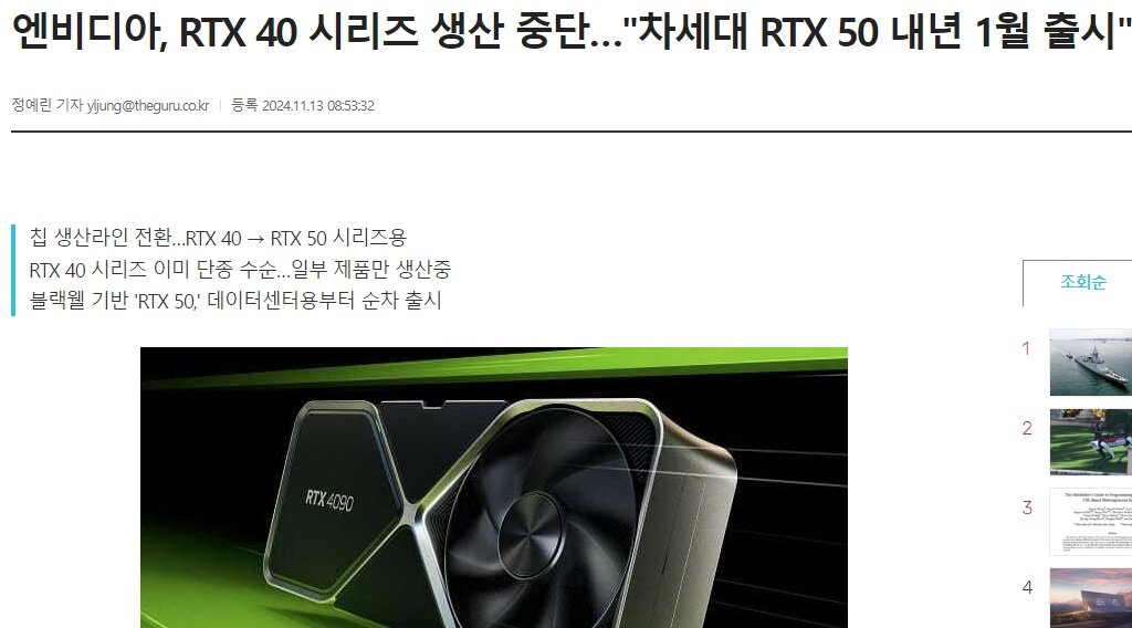 지포스 RTX 40 시리즈 생산 중단…"차세대 RTX 50 내년 1월 출시"