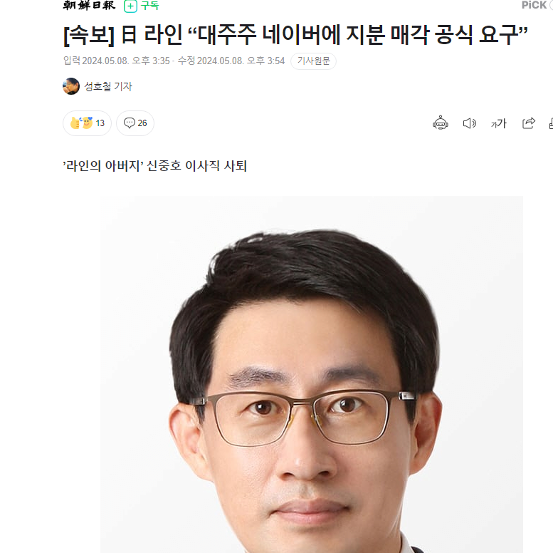 [속보] 日 라인 “대주주 네이버에 지분 매각 공식 요구
