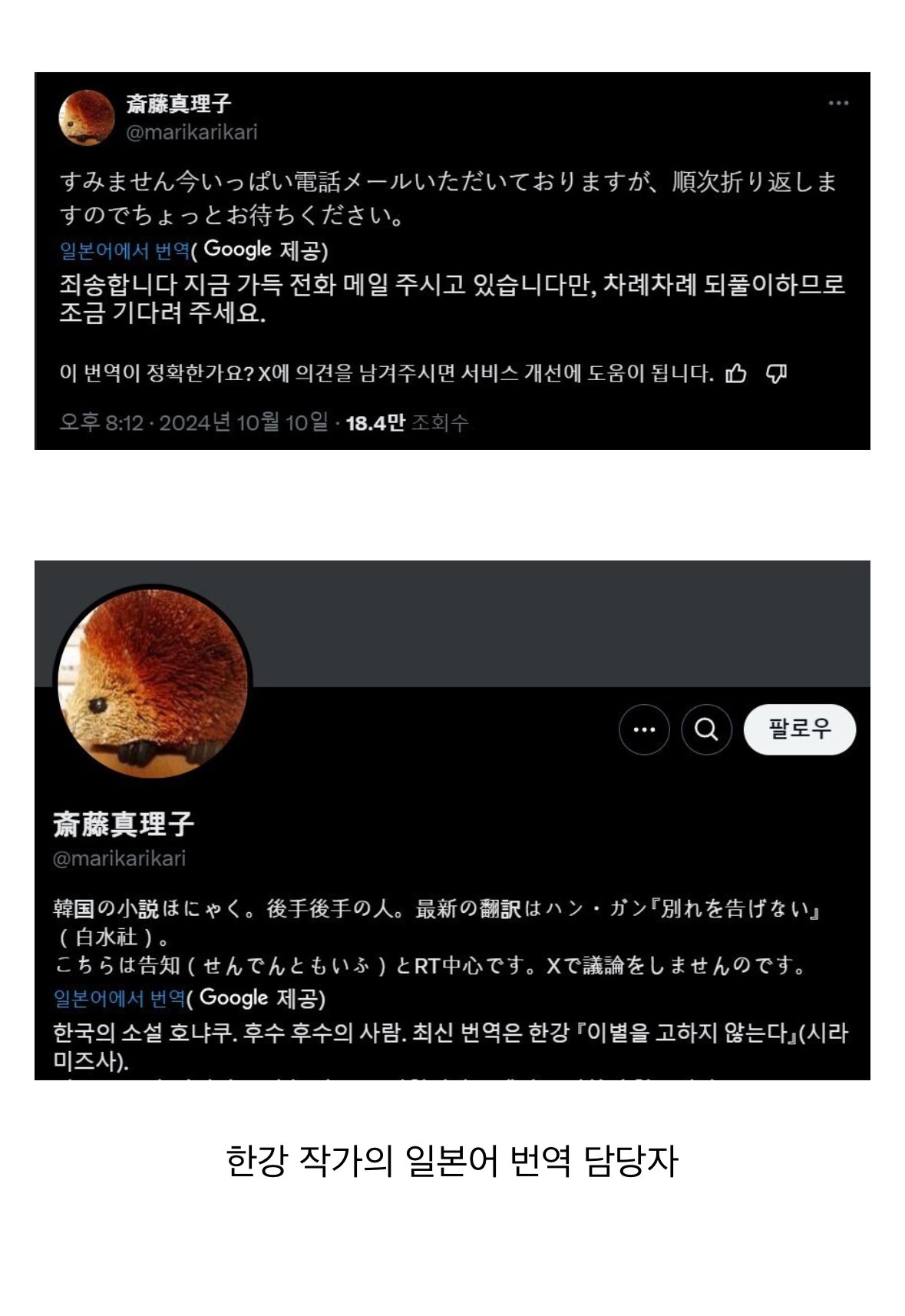 한강 노벨 문학상으로 쉴새없이 연락받는 일본인