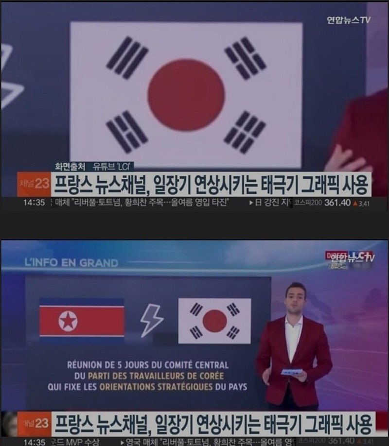 프랑스 뉴스에 나왔던 태극기 그래픽 레전드 ㄷㄷ jpg