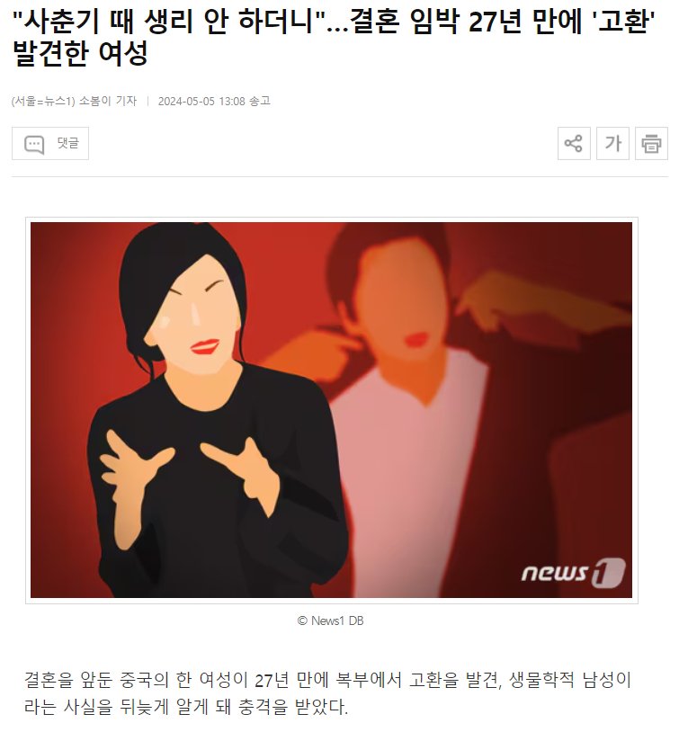 "사춘기 때 생리 안 하더니"…결혼 임박 27년 만에 '고환' 발견한 여성