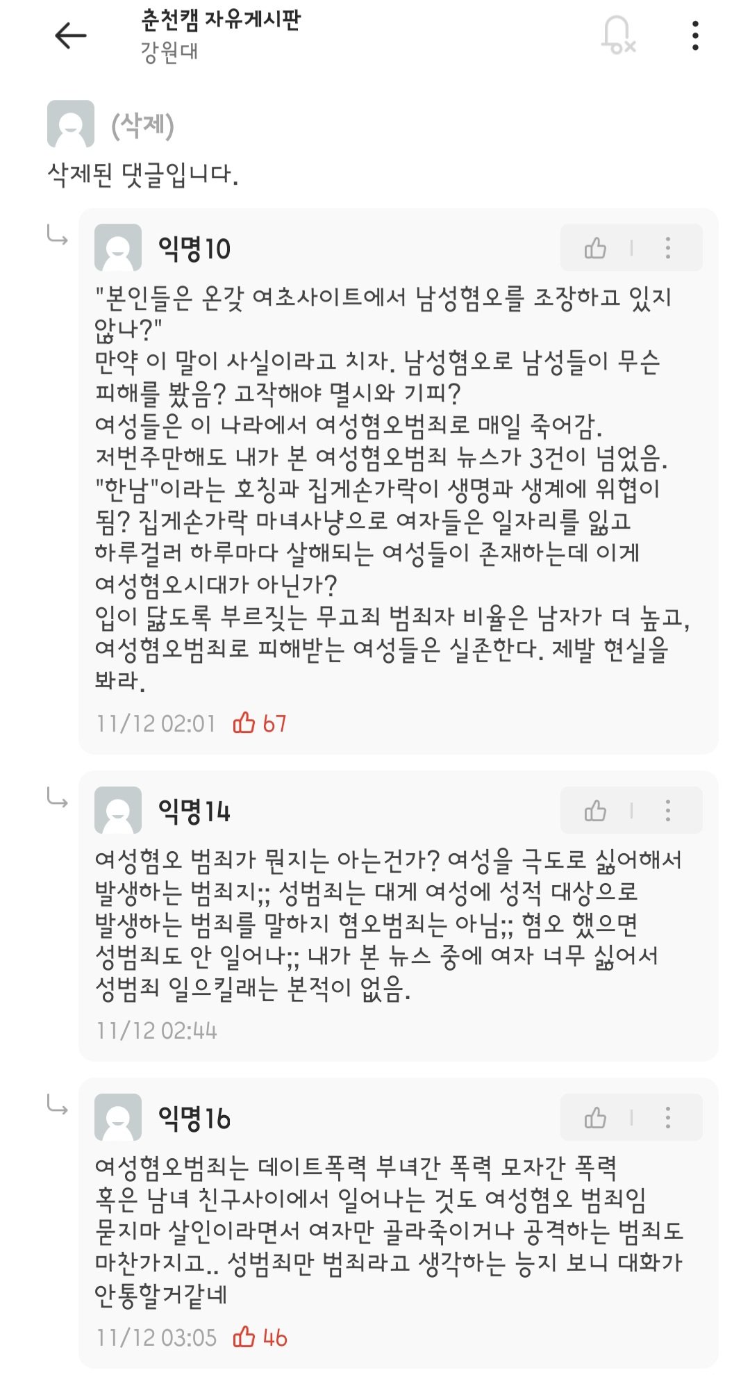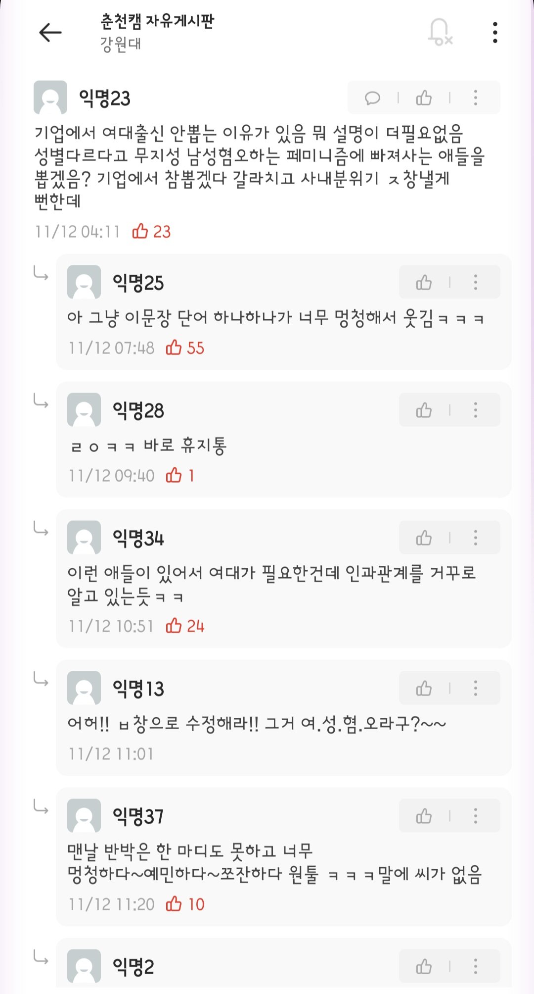 가끔 병신들끼리 남혐여혐 하면서 놀긴해도