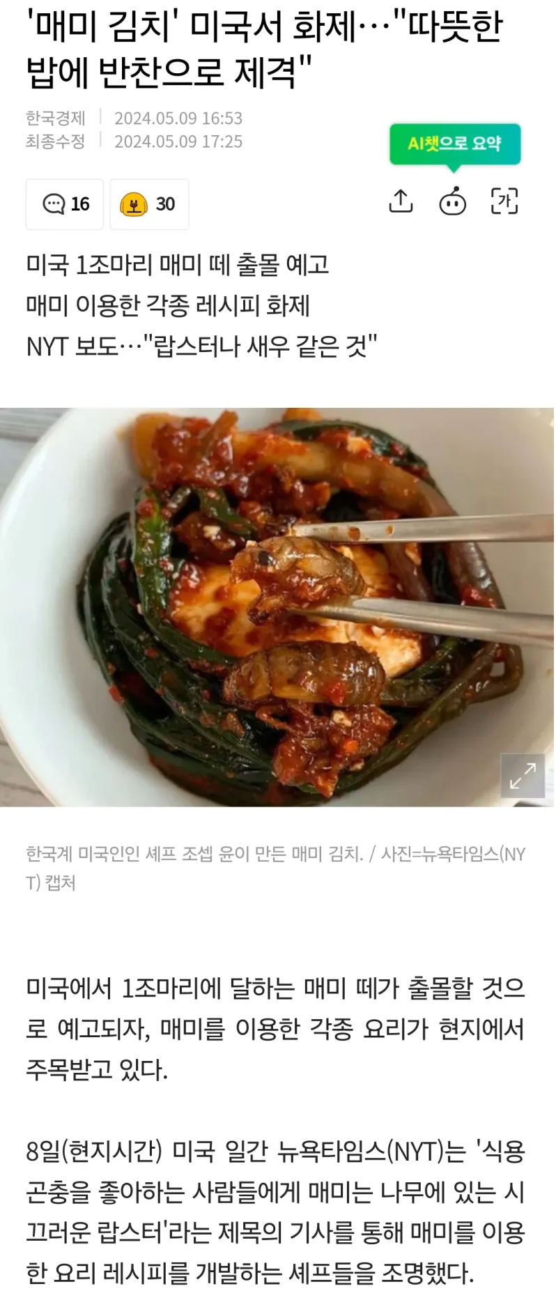 '매미 김치' 미국서 화제…"따뜻한 밥에 반찬으로 제격" jpg
