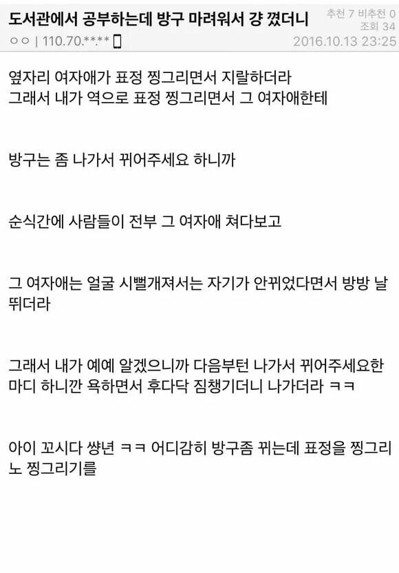 도서관에서 공부하는데 방구 마려워서 걍 꼈더니