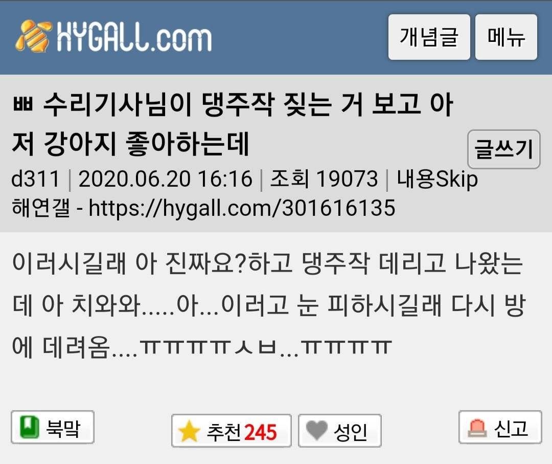 수리기사님이 강아지 짖는 거 보고 "저 강아지 좋아하는데" 이러시길래.jpg