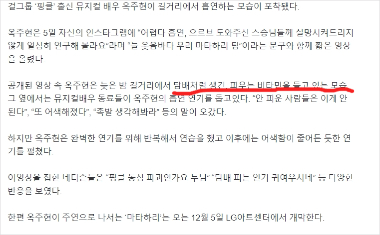사진기사 밑에는 흡연(아님)하는 모습