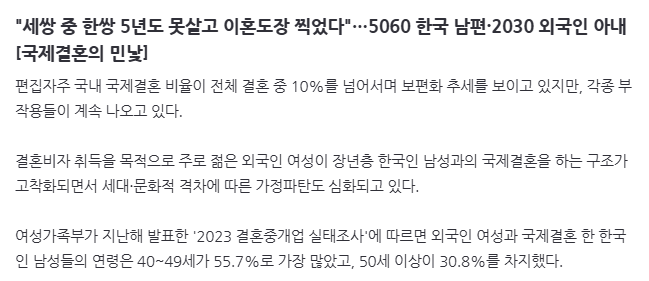 "세쌍 중 한쌍 5년도 못살고 이혼도장 찍었다"…5060 한국 남편·2030 외국인 아내[국제결혼의 민낯]