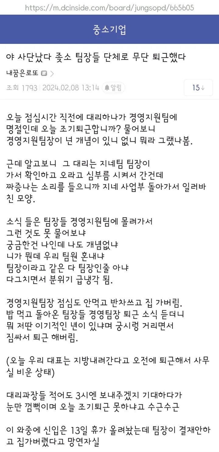 연휴 전날 ㅈ소 팀장들 단체 무단 퇴근.jpg