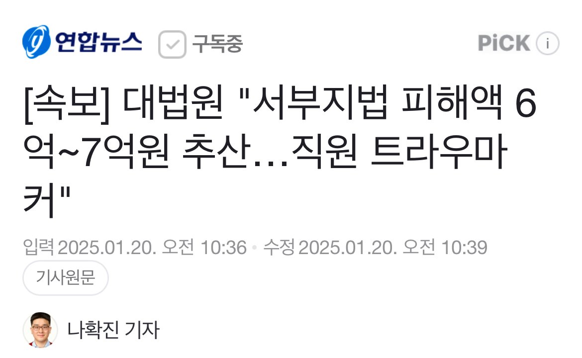 [속보] 대법원 "서부지법 피해액 6억~7억원 추산…직원 트라우마 커"