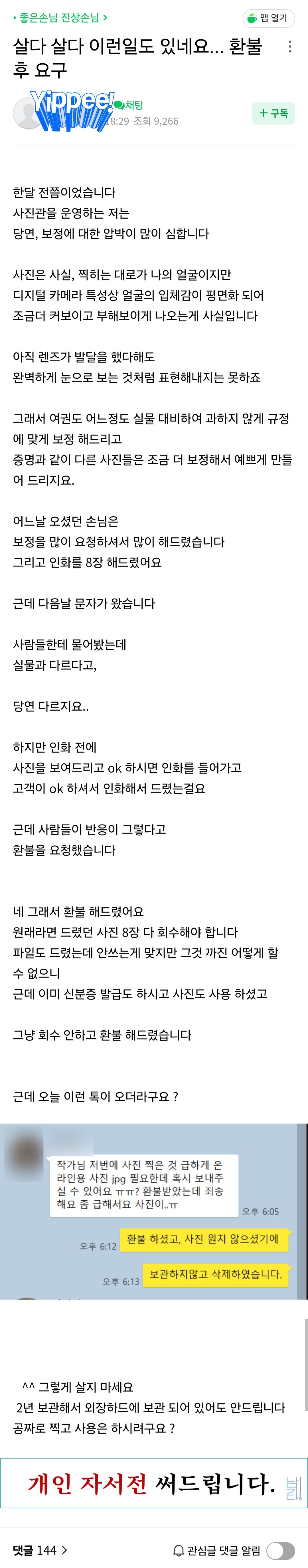 환불받고 사진 달라는 고객...jpg