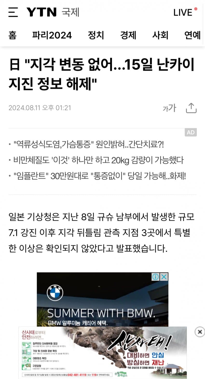 다행히 난카이 대지진으로 이어질만한 조짐은 안보인다고 함.