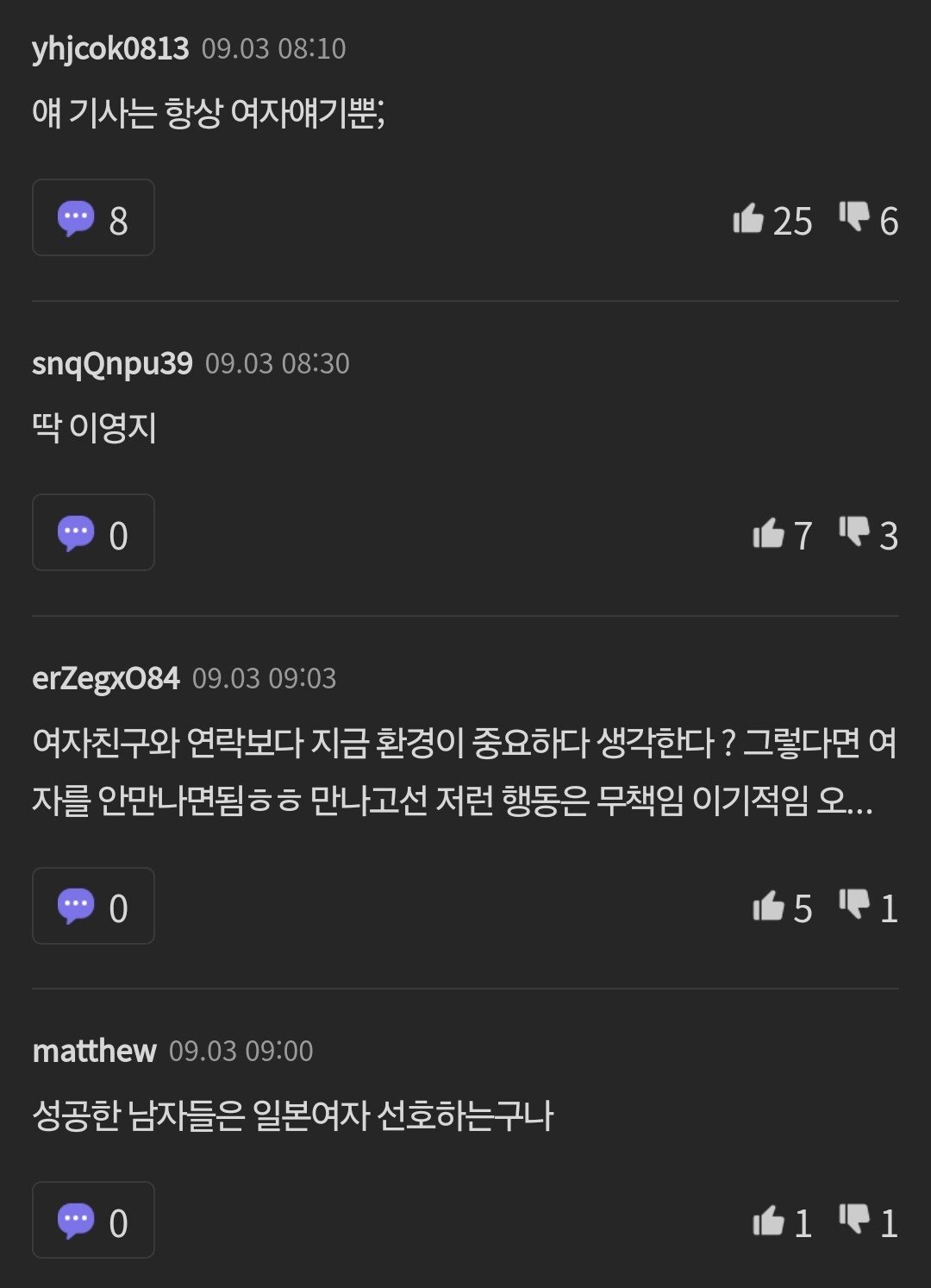 욕설이나 비방 목적의 댓글은