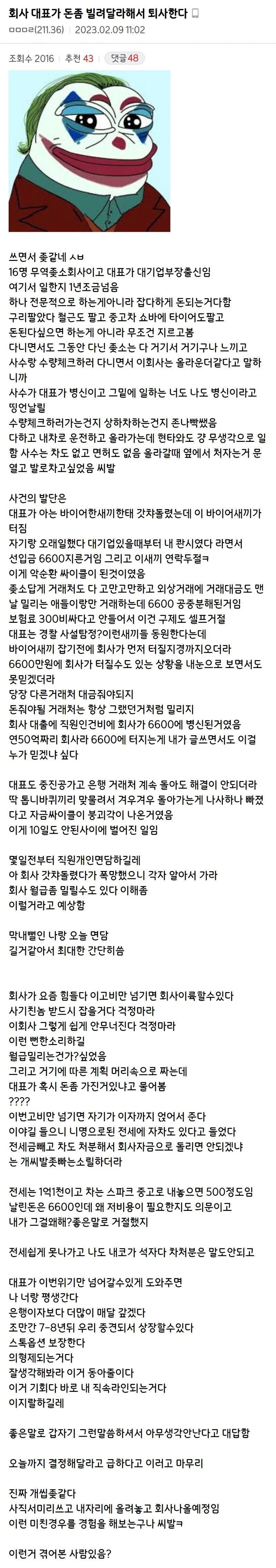 회사대표가 돈 빌려달래서 퇴사한다.jpg