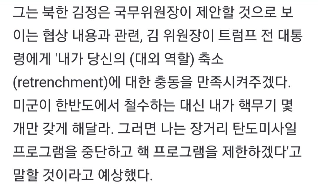 北김정은, 트럼프에 핵 소량 보유 인정·미군철수 요구 가능성"