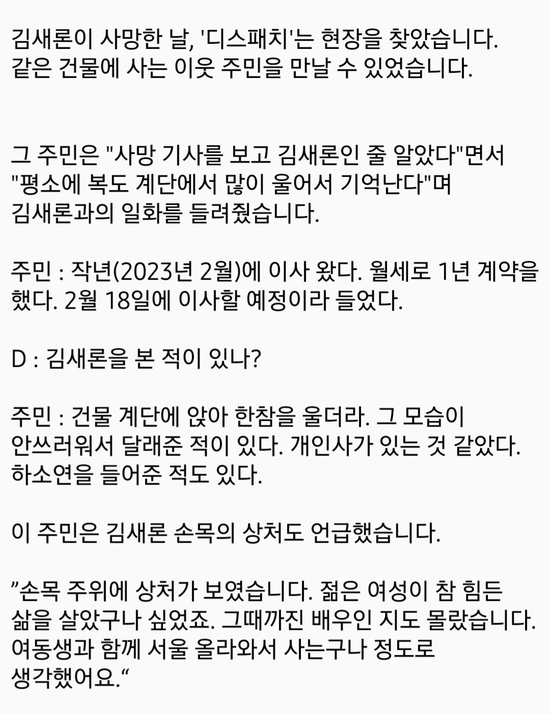 김새론 이웃주민 "복도에서 많이 울어서 기억난다" ㄷㄷ