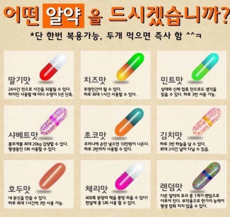 어떤 알약을 드시겠습니까?