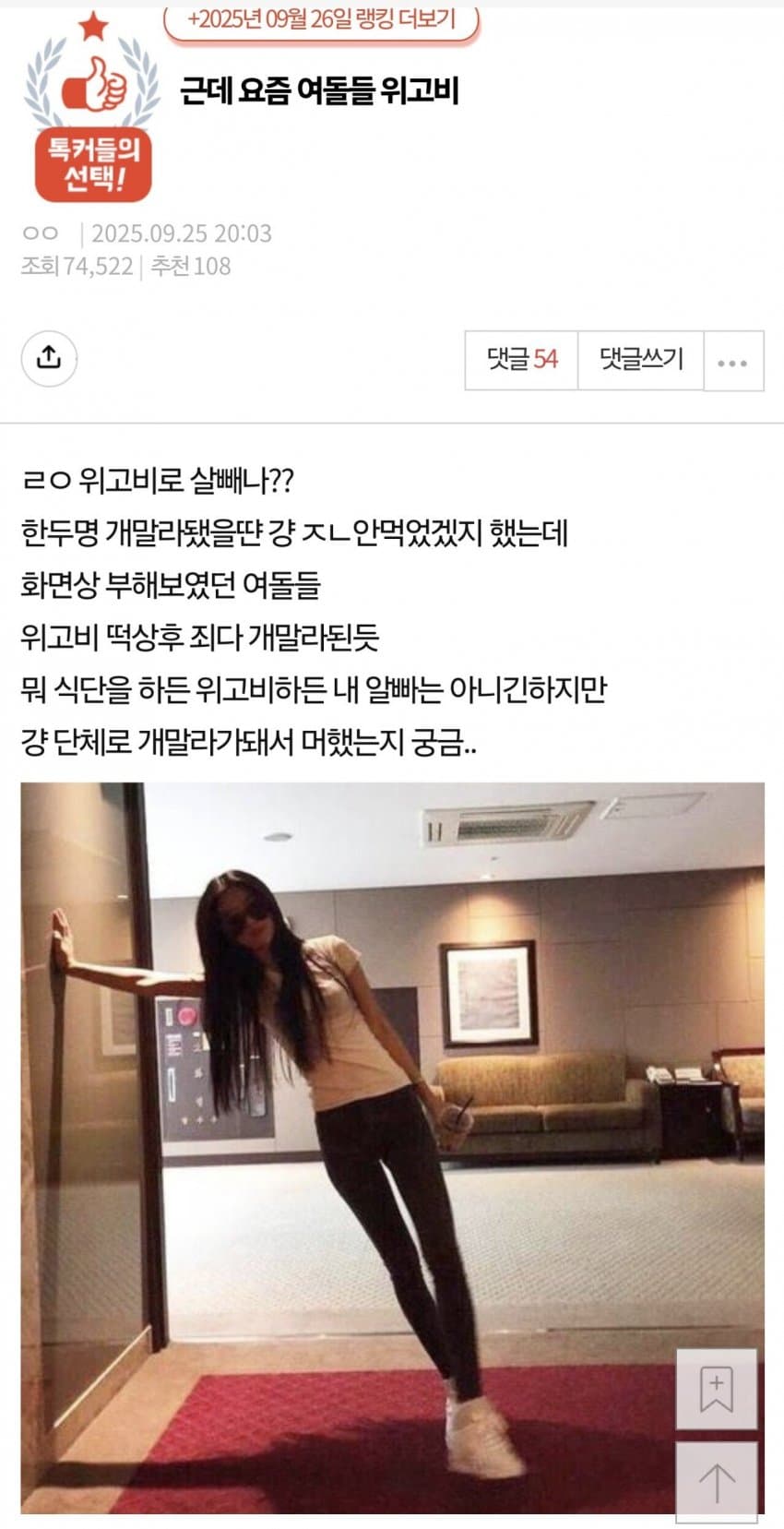 요즘 여돌들 다이어트 위고비빨이라는 판녀들